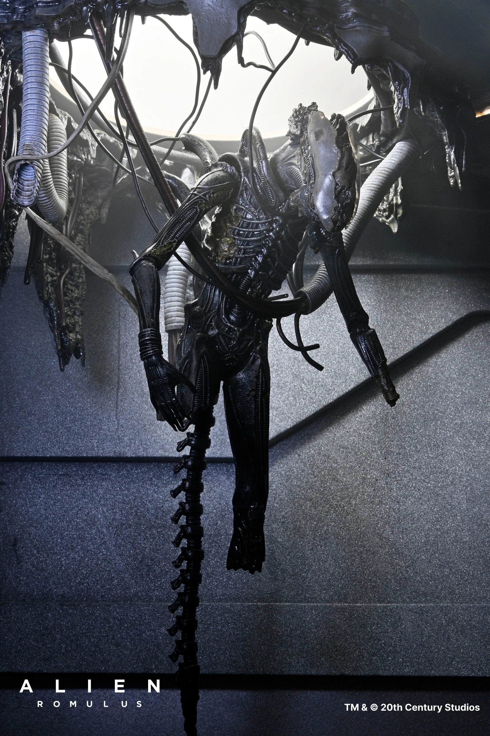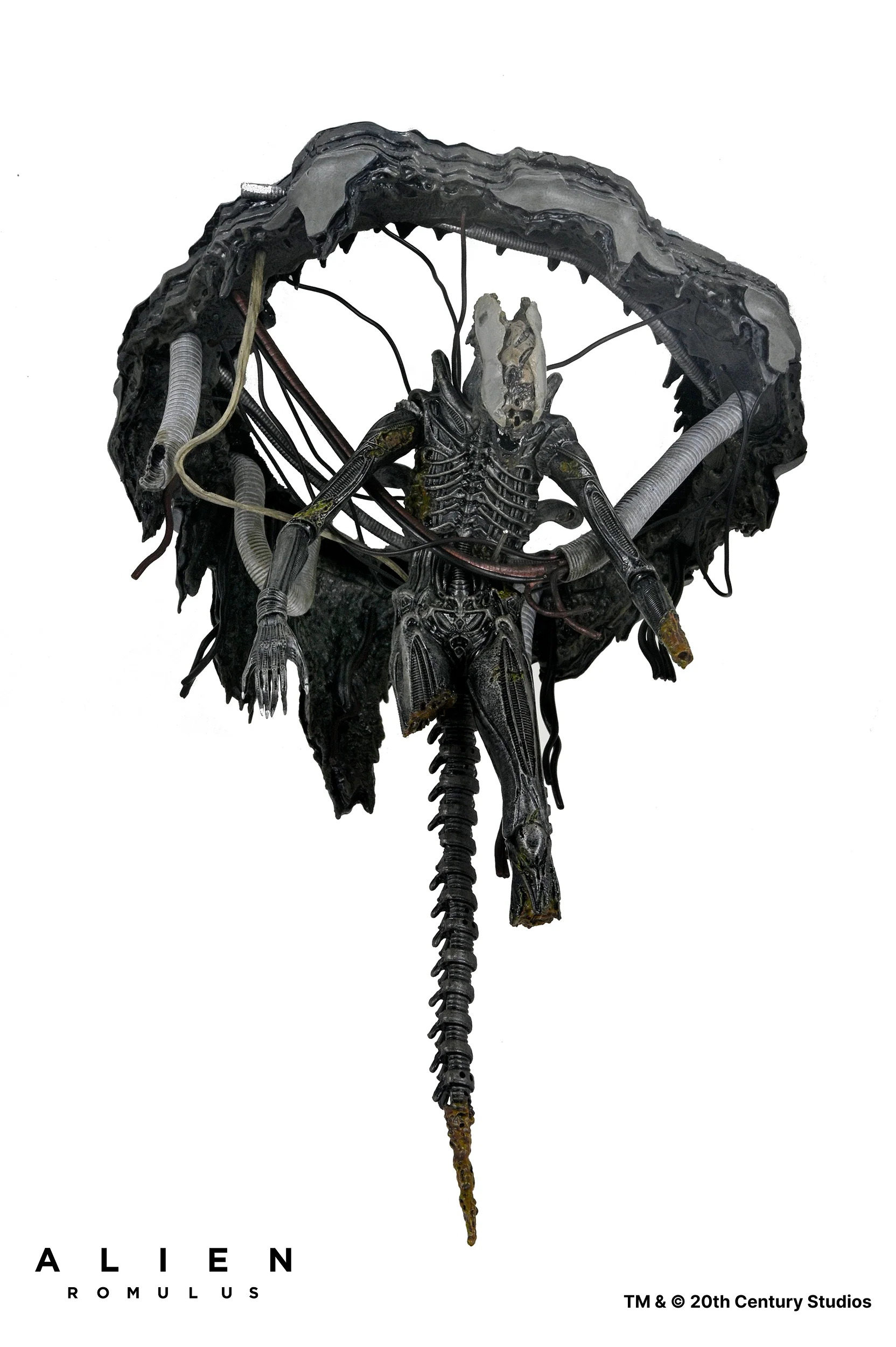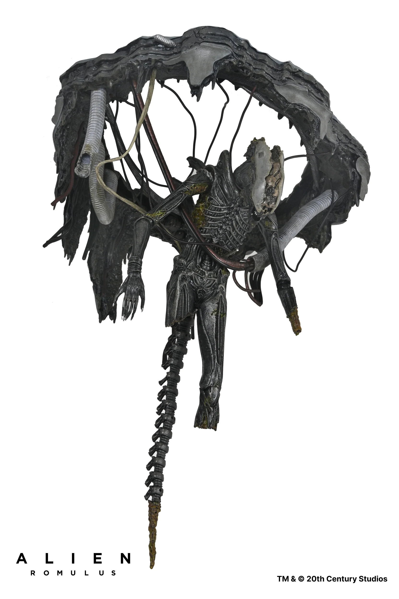 De la exitosa película de Fede Alvarez de 2024, Alien: Romulus , ¡llega el regreso del famoso Xenomorfo que lo inició todo! Tras una brutal batalla contra las fuerzas de seguridad de Weyland-Yutani, el alienígena cuelga suspendido del techo del laboratorio de la nave cuando su sangre ácida quema un agujero en el suelo… la misma sangre que dio a los científicos acceso al ADN de la máquina de matar definitiva. Esta figura de lujo de NECA cuenta con cables articulados para colgar al Xenomorfo mutilado e incluye una pieza de exhibición del techo del laboratorio quemado por el ácido diseñada para montar en la pared o el techo. La figura también cuenta con mandíbula articulada, mandíbula interior deslizante y cola con alambre.
